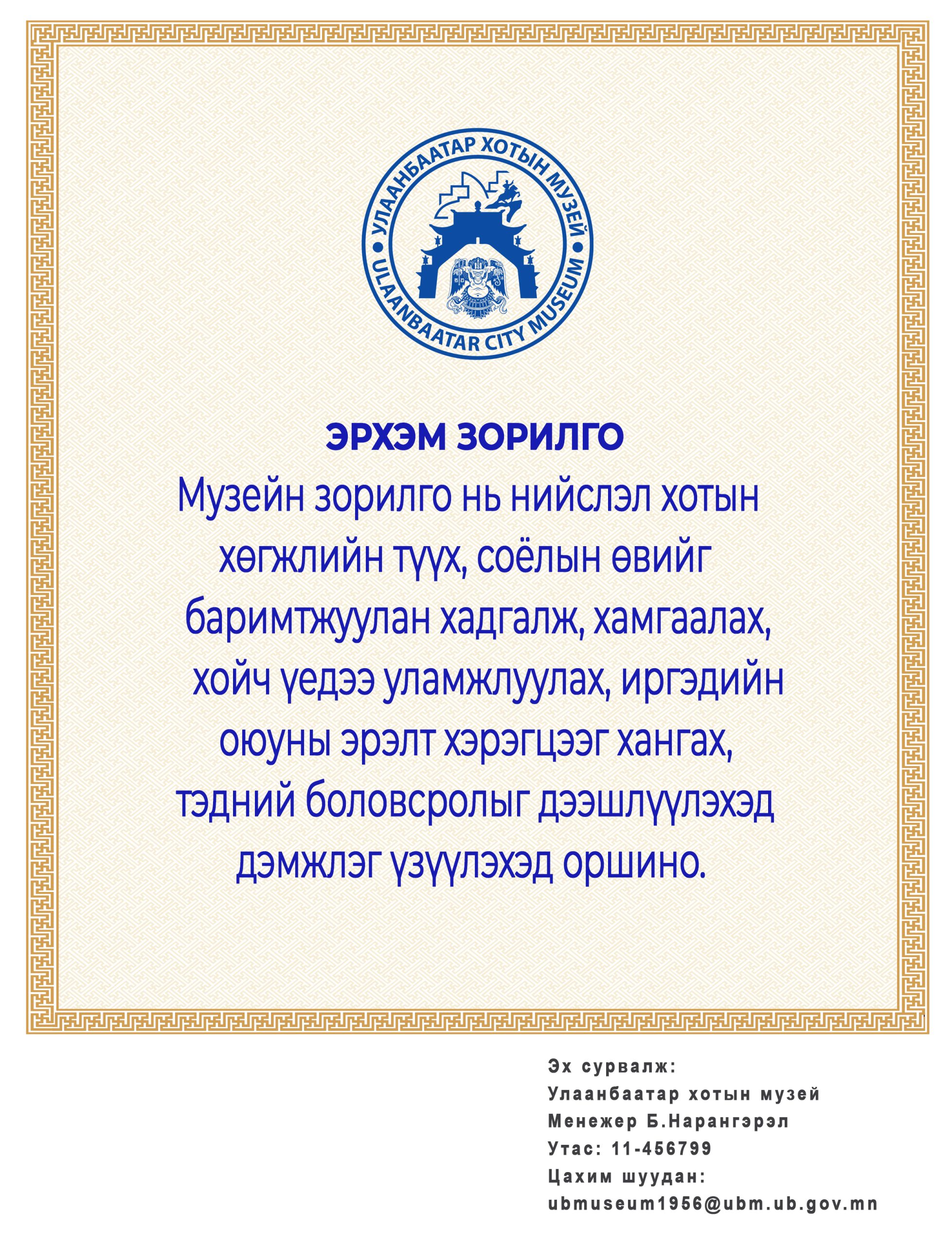 5. Музей судлал, сан хөмрөгийн үзмэр, Улаанбаатар хотын хөгжлийн түүхийн