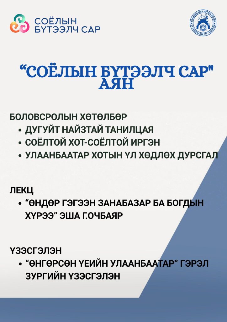 Under the slogan “Mongolian Pride” the Ulaanbaatar City Museum is organizing the following activities within the framework of the “Cultural Creative Month-2025” campaign.